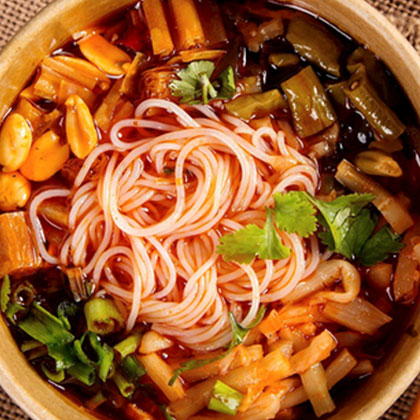 螺蛳粉是广西柳州受欢迎的小吃之一,具有酸辣鲜爽烫的独特风味,由柳州特有的软滑爽口米粉加酸笋、木耳、花生米、油炸腐竹、螺蛳等配料及浓郁大骨汤调合而成,螺蛳粉已占据万千少女的美食心。